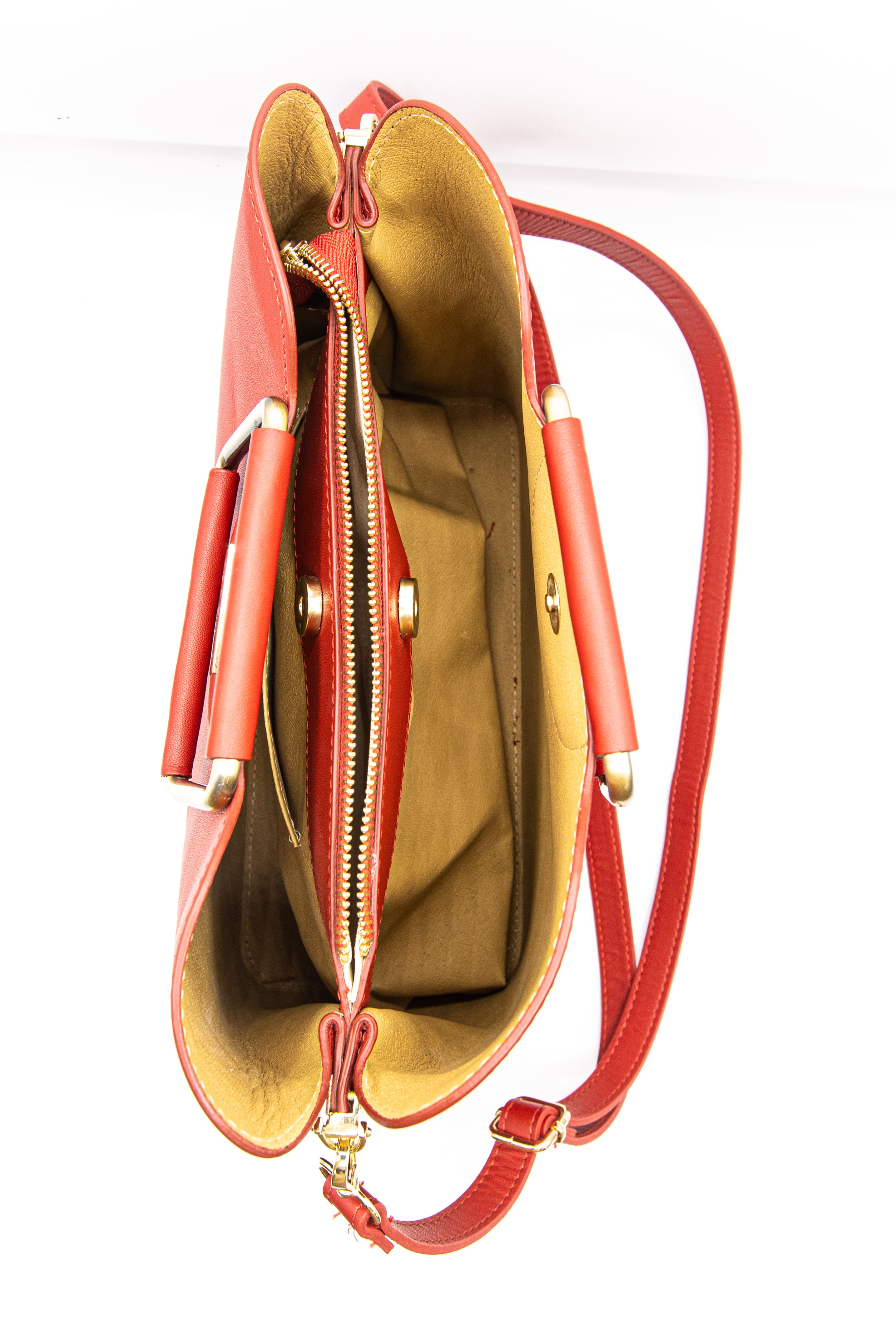 Geanta dama din piele naturala,are 2 compartimente, buzunar cu fermoar pentru acte,curea de umar ajustabila si detasabila.Sistem de inchidere cu magnet.