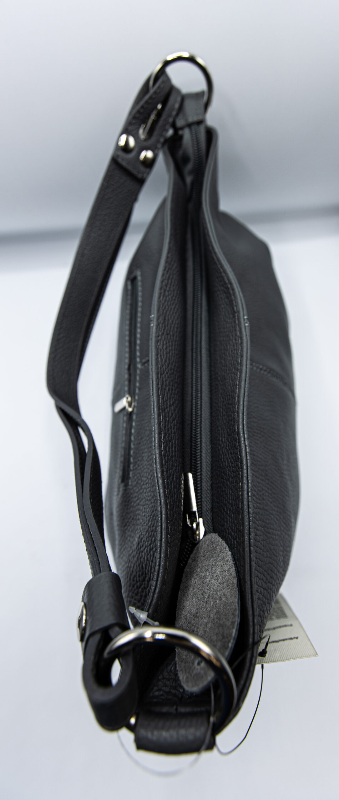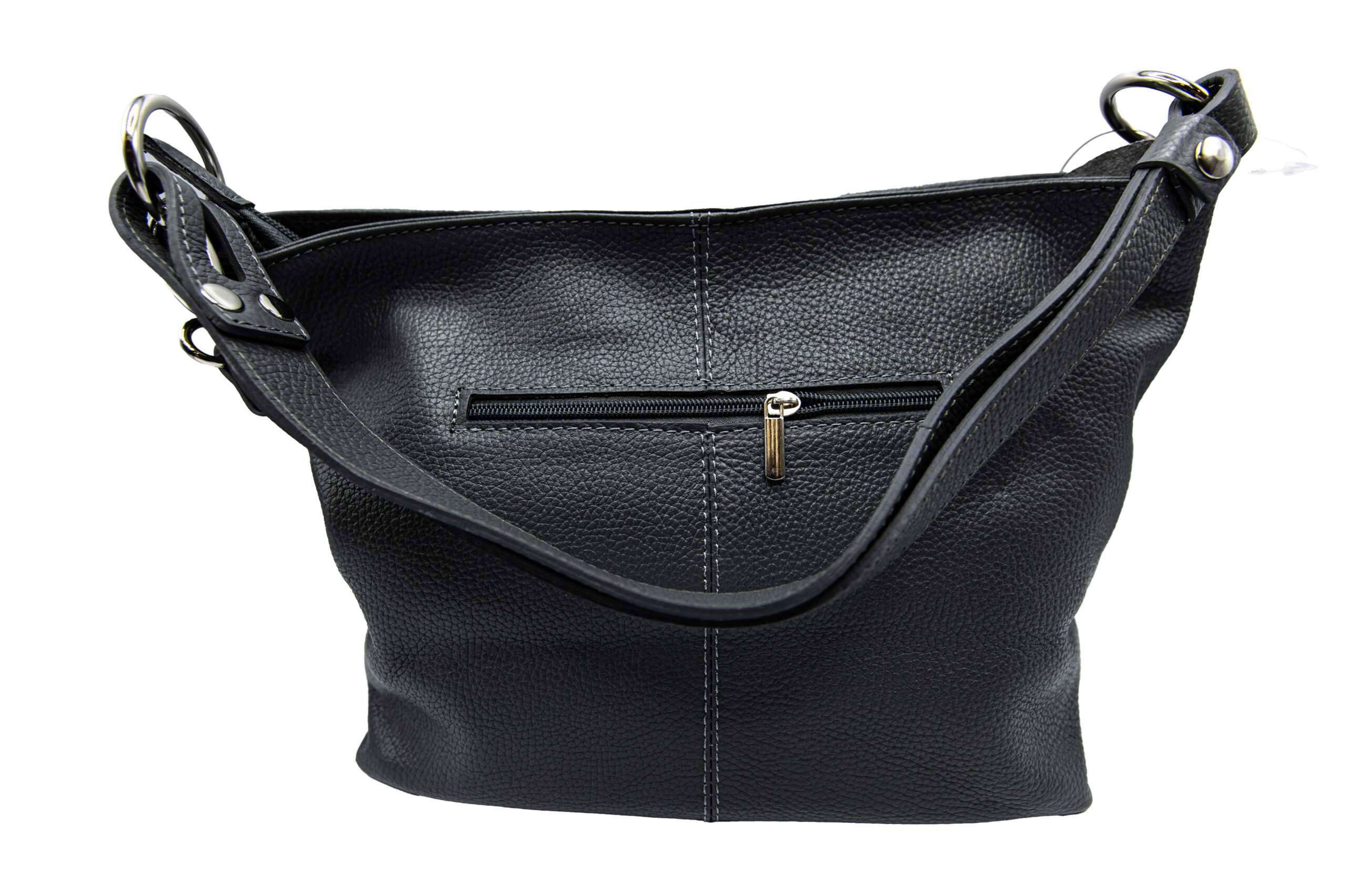 Geanta dama piele naturala,cu doua compartimente la interior si buzunare ,sistem de inchidere cu fermoar, cureaua de umar este reglabila.