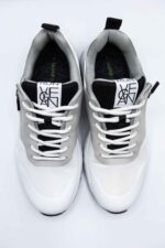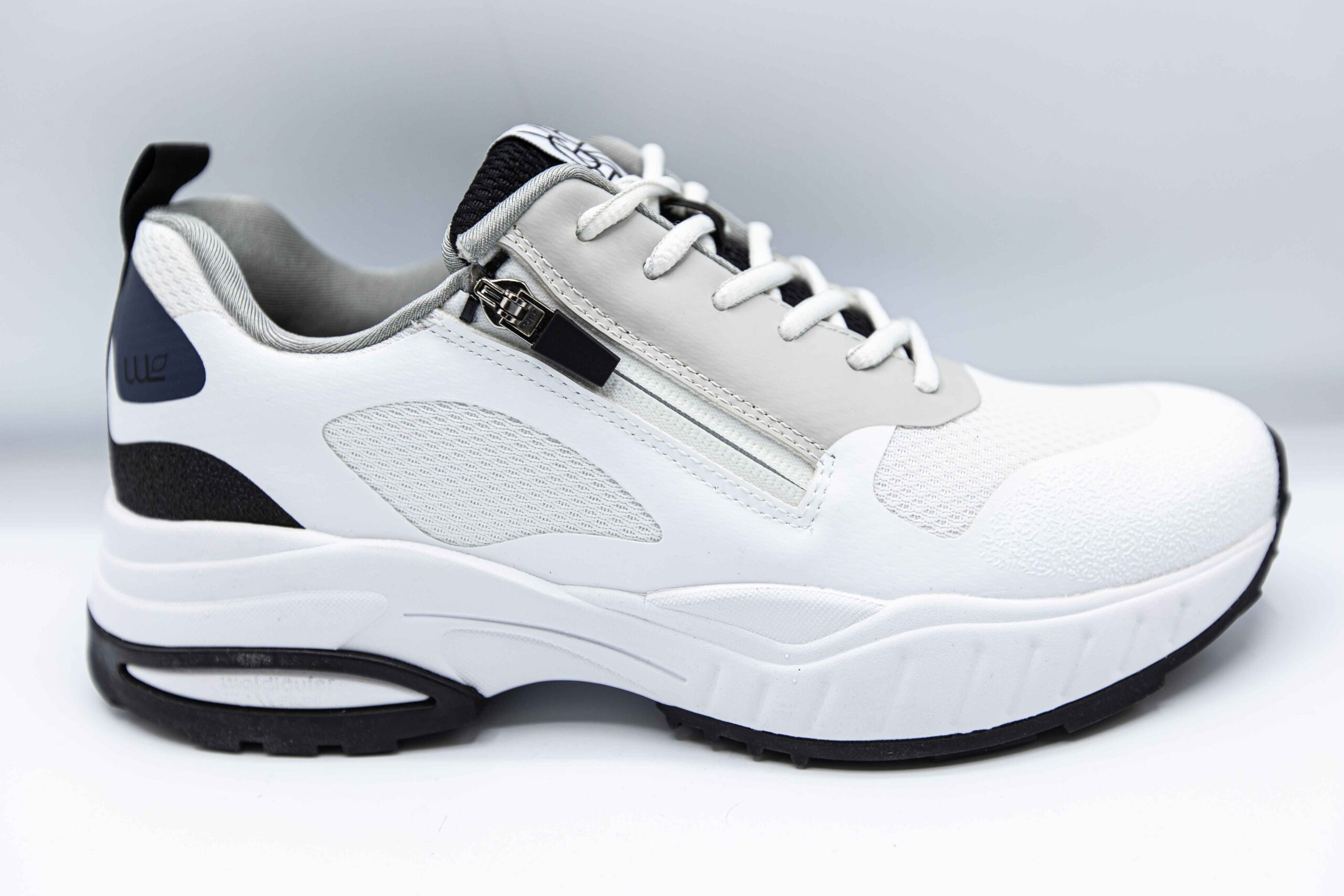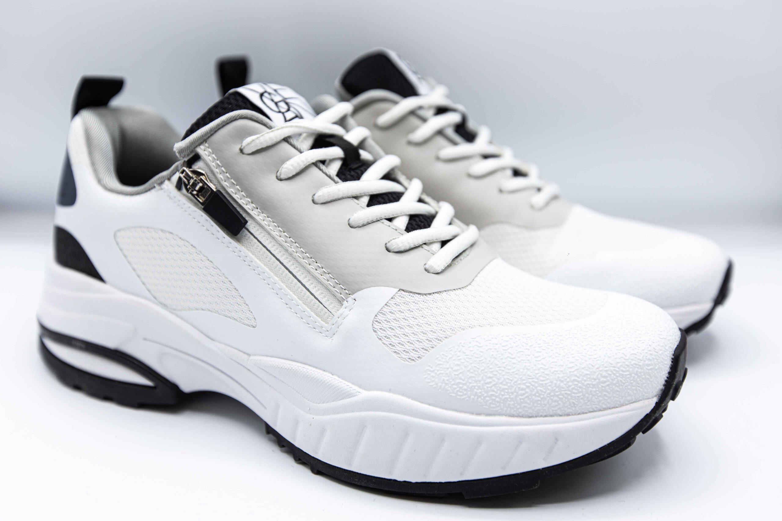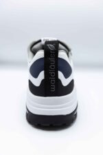 Elegant, confortabil și 100% vegan,Partea superioară o combinație unică de culori de alb perlat,bleumarin și negru.Căptușeala este din textil,iar talpa din cauciuc ofera amortizare și stabilitate.