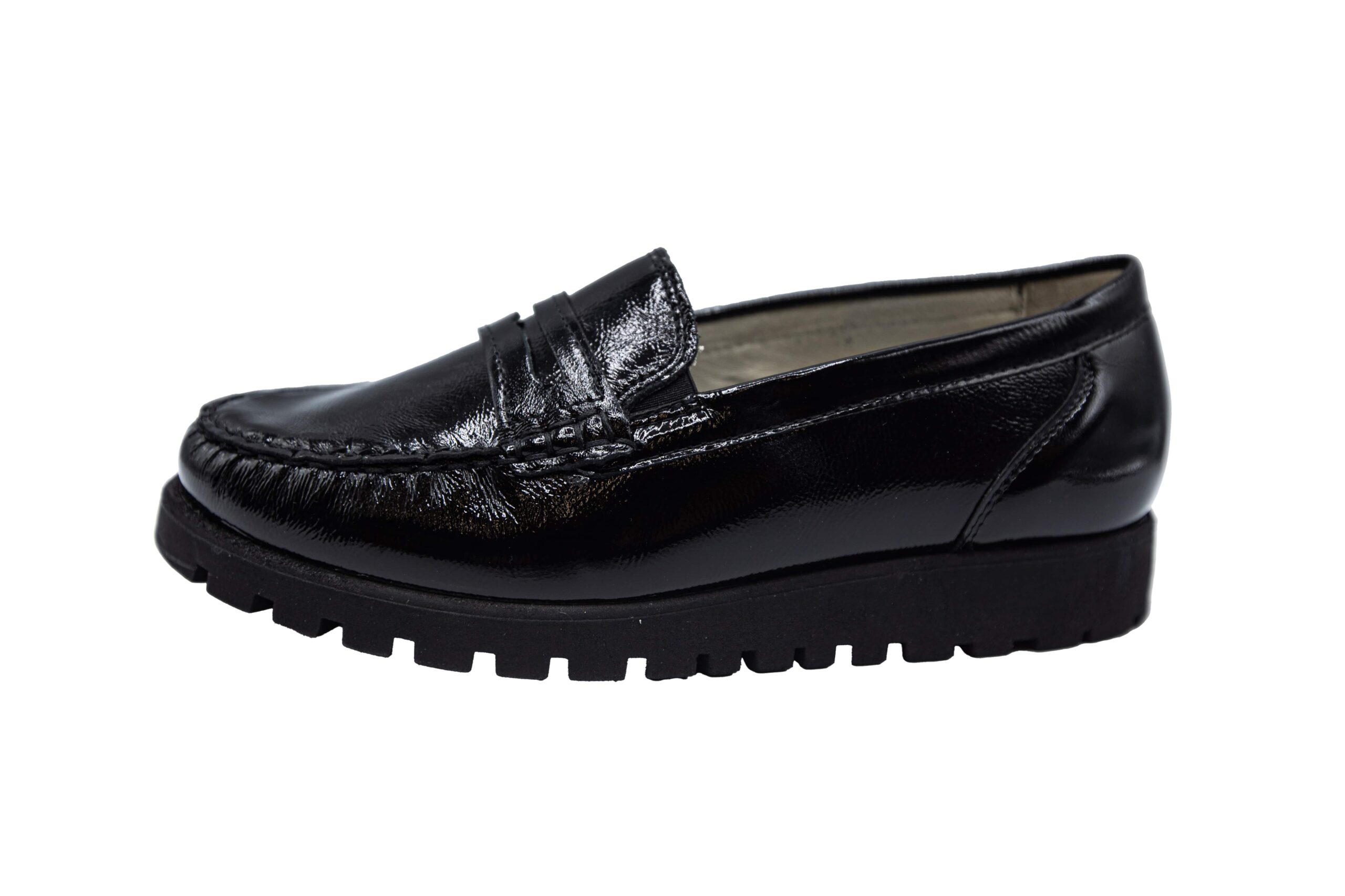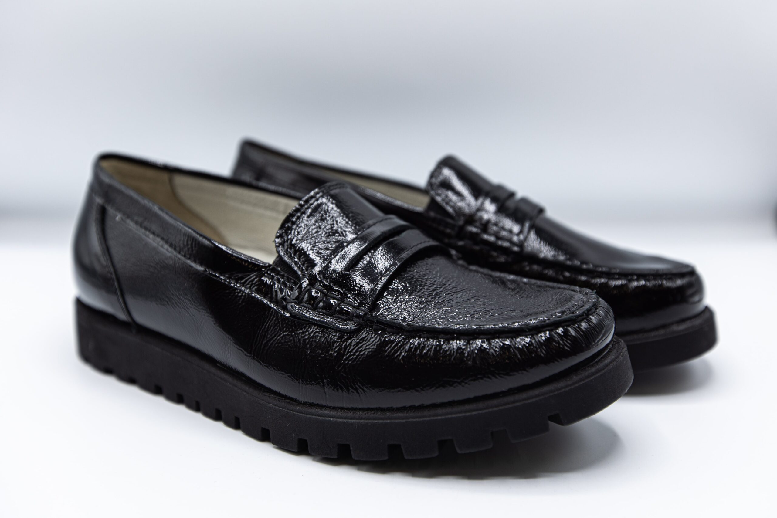 Pantofii sunt din piele naturala lacuita la exterior. La interior sunt captusiti cu piele naturala,are branturi moi si detasabile si talpa foarte flexibila.