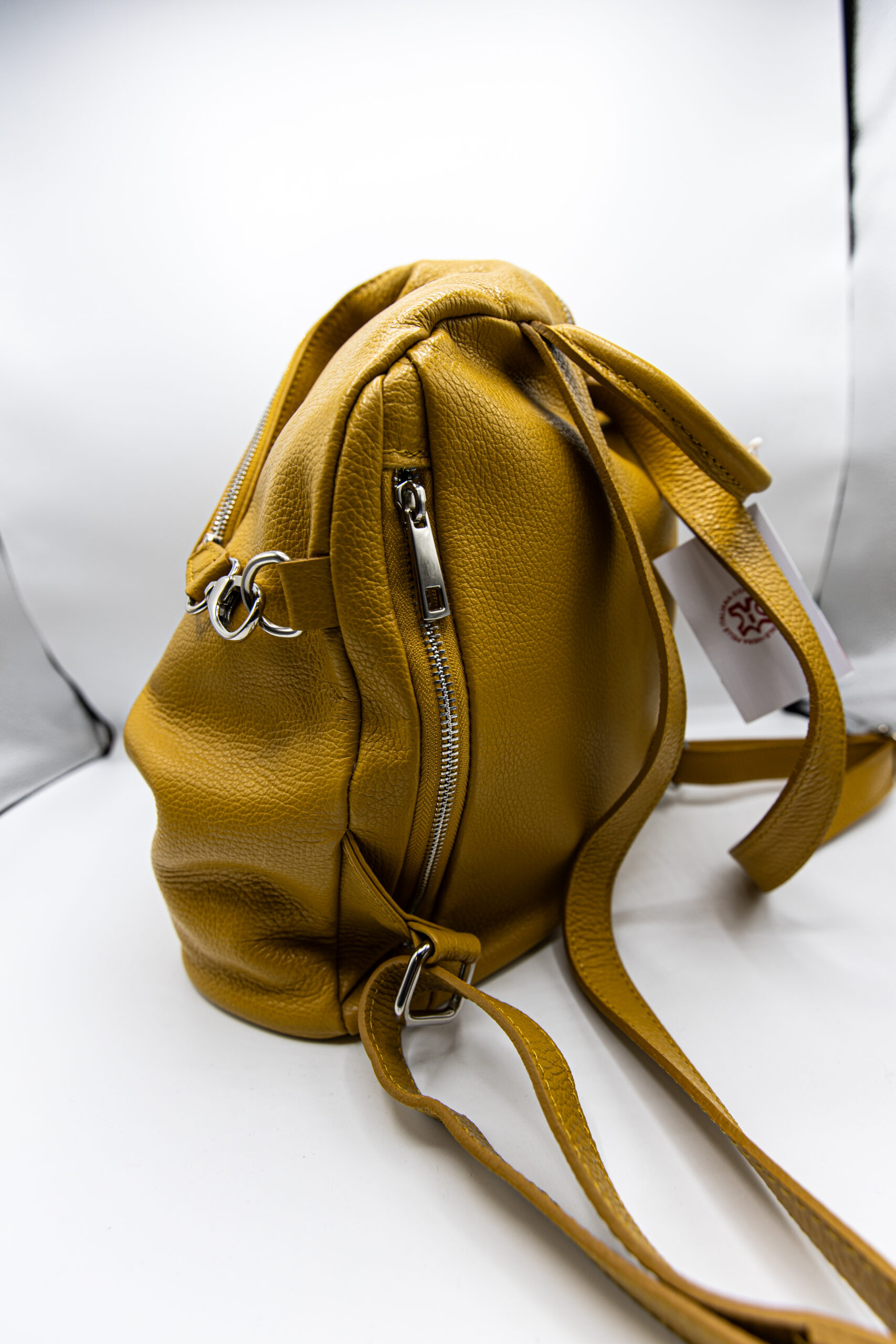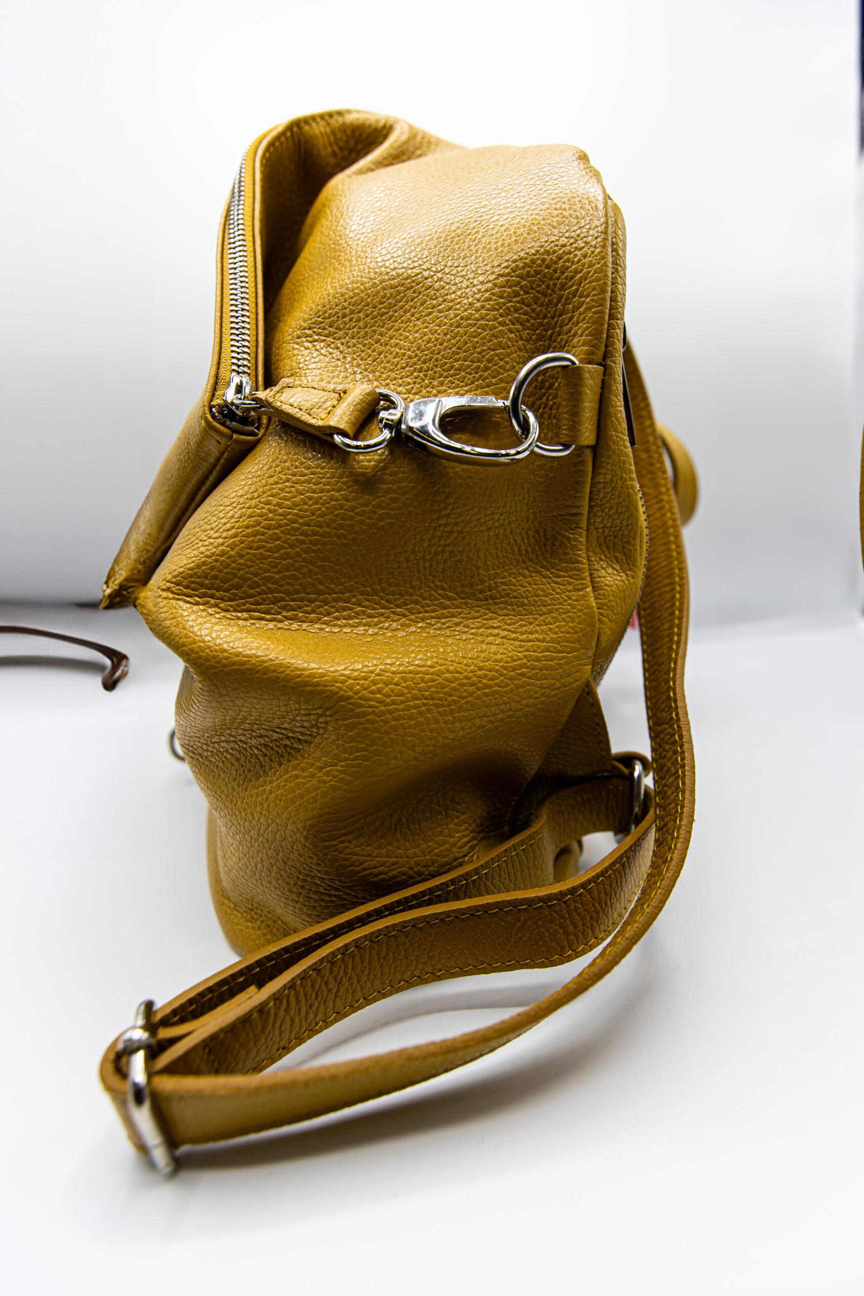 Rucsac din piele naturala,cu un singur compartiment si buzunar lateral.
