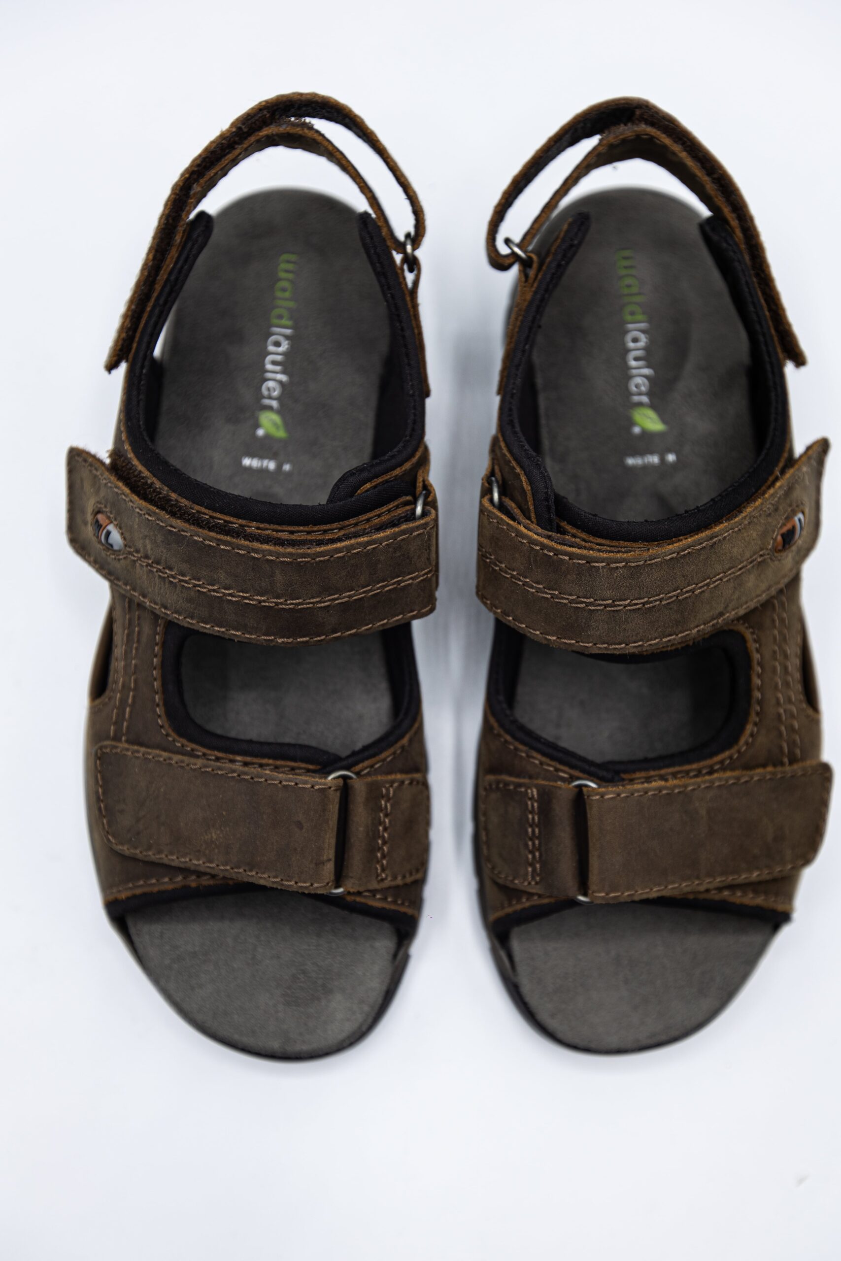 Sandalele de culoare maro,sunt din piele nubuk la exterior si prezinta cusaturi decorative.Modelul se potrivesteă fiecărui picior în functie de latimea acestuia datorită elementelor de fixare cu velcro(inchidere cu scai)